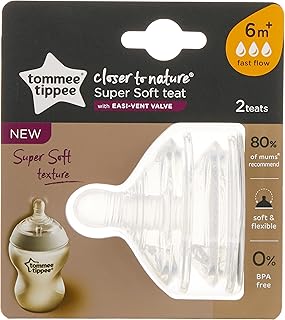 Tommee Tippee Baby Flasche Nuckel Vent Variflow Schnell Langsam Fluss näher an der Natur - Durchsichtig, Tommee Tippee Closer to Nature Teat Fast Flow 2Pk