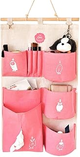 Mirayen Baumwolle Hängeaufbewahrung Tasche Hängeorganizer Wandorganizer Hängenden Beutel Wandtasche Wand hängenden für Kinderzimmer Schlafzimmer(23 * 59cm) (rosa)