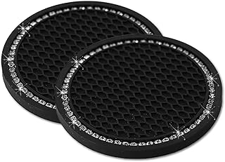 Lipctine 2 Stück Bling Auto Getränkehalter Untersetzer, 7,9 cm weiche Bling Kristall Strass Gummi Pad Set Runde Auto Getränkehalter Einsatz Getränkeuntersetzer Auto Innenraum Zubehör Schwarz