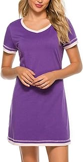 Damen Nachthemd V-Ausschnitt Kurzarm Nachthemd Lässig Lose weiche Baumwolle Home T-Shirt Kleid Nachtwäsche Nachthemden Jersey Nachthemd Nachtwäsche Loungewear