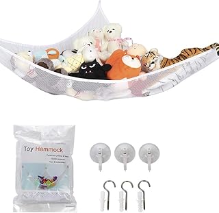DIYARTS Toy Hammock Große, weiche Kinderzimmermöbel aus Mesh-Netz mit 3 Klebehaken, um das Kinderzimmer sauber und ordentlich zu halten