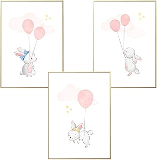 KidsCuteDecorations 3er Set Bilder Babyzimmer Poster Tiere Kinder | Elefant Kinderzimmer Bild Mädchen Rosa DIN A4 | Wandbilder Baby Personalisiert A3 | Kinderbilder mit Namen | Kinderposter Jungen