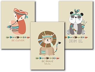 3er Set Kinderbilder Kinderzimmer für Mädchen und Jungen, A4 Kunstdruck Tiere, Bilder Babyzimmer Deko, Kinderposter, Indianer Tierbilder | ohne Rahmen
