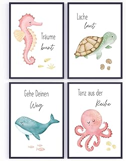 Calmondo 5er Set Kinderposter Bilder Unterwasserwelt | kindgerechte Poster Wandbilder für Kinderzimmer | Deko für Kinder Baby Jungen Mädchen | Wal Schildkröte uvm. | DIN A4. Das Bilderset mit seinen 5 liebevoll designten Bildern ist ein absoluter Blickfang für groß und klein. Taucht ein in eine wundervolle Unterwasserwelt und verleiht. 5er Set Kinderposter Bilder "Unterwasserwelt" | liebevoll gestaltete Poster Wandbilder für Kinderzimmer | Deko für Kinder Baby Jungen Mädchen | Wal Schildkröte uvm. | DIN A4 - Ohne Rahmen - Calmondo. KAIRNE 4 Stück 3D Wandtattoo Unterwasserwelt,Wandsticker Badezimmer Bilder,3D Hai Wandtattoo Kinderzimmer,Ozean Bild Fische Sticker.